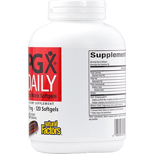 -. Binding : Health and Beauty -. Brand : Natural Factors -. Color : Parent -. Feature : Creates and maintains a satisfying sense of fullness. / This complex matrix, when combined with stomach acid, disperses better than any other tested delivery system for soluble or insoluble fiber. / The most convenient type of PGX. / The ultra matrix soft gels provide an advanced delivery system for superior results. / Helps lower the glycemic index of your meals. -. IsAdultProduct : 0 -. Label : Natural Factors -. Manufacturer : Natural Factors -. MPN : PGX-240-softgals -. PackageQuantity : 1 -. PartNumber : PGX-240-softgals -. ProductGroup : Health and Beauty -. ProductTypeName : HEALTH_PERSONAL_CARE -. Publisher : Natural Factors -. Studio : Natural Factors -. Title : Natural Factors - PGX Daily Ultra Matrix 750mg - Supports Appetite Control