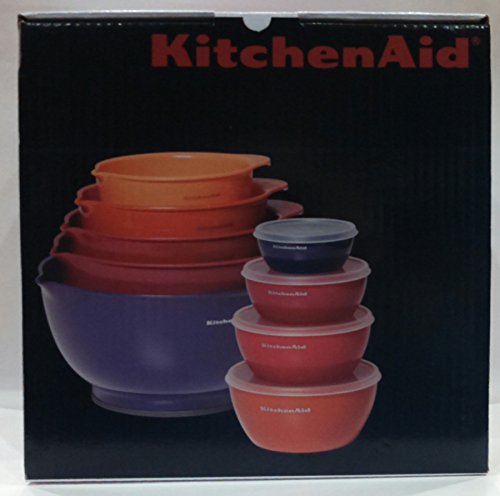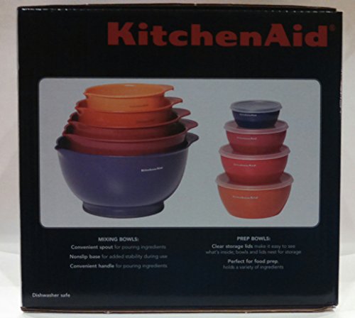 - Feature : Kitchenaid 13 Piece Mixing and Prep Bowl Set / Nonslip base for added stability during use / Mixing Bowls:1 1/2,2 1/2, 3 1/2, 4 1/2 and 5 1/2 Quart Sizes / Prep bowls with lids:Include 1,2,3 and 4 cup sizes / Features convenient spout for pouring ingredients
