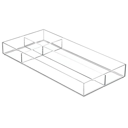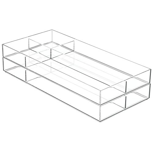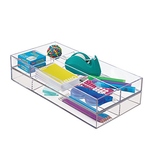 mDesign Office Supplies Desk Drawer Organizer for Scissors, Pens, Markers, Highlighters, Tape - 8" x 16" x 2", Clear
