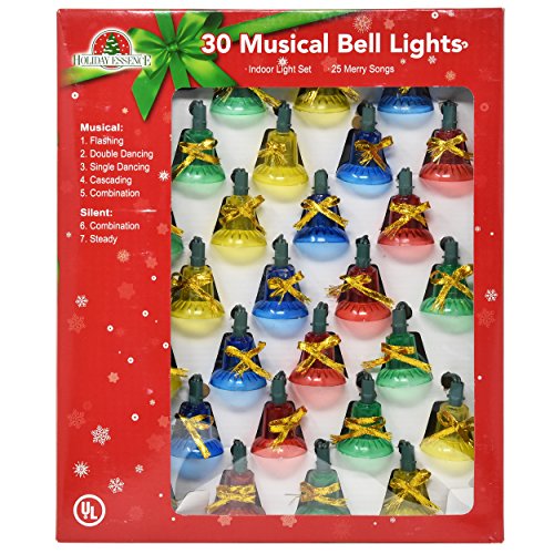Holiday Essence Musical Christmas Bell Light Set, 30 Indoor Color Bell Lights, Plays 25 Merry Songs and Multiple Chasing Functions