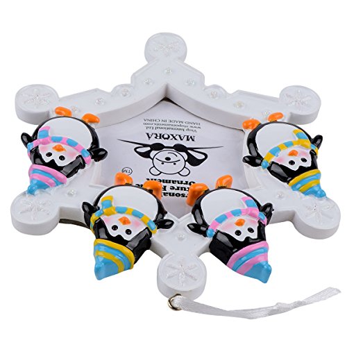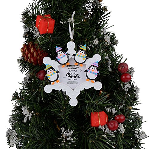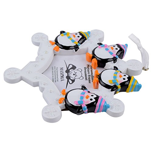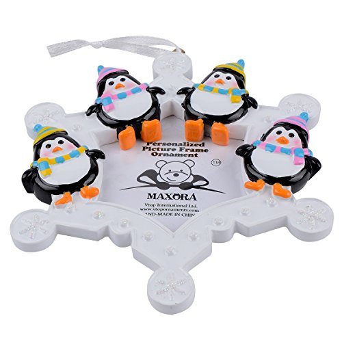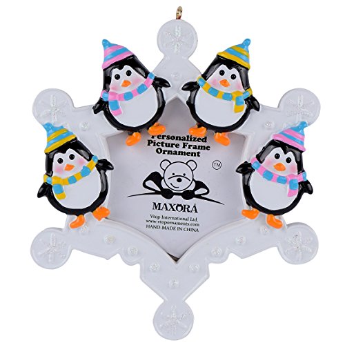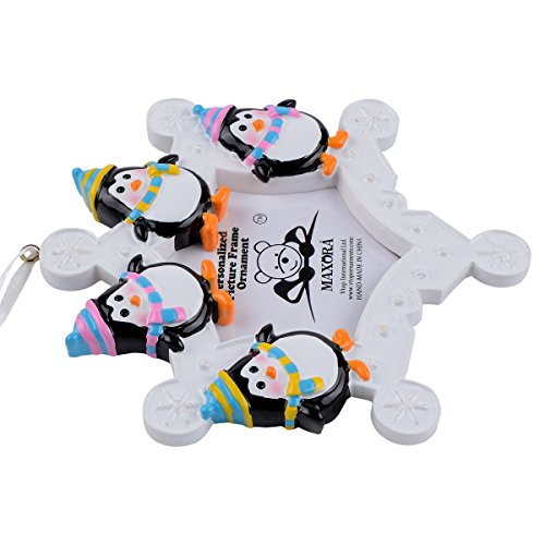 Snowflake Penguins Family of 4 Personalized Photo Frame Ornament