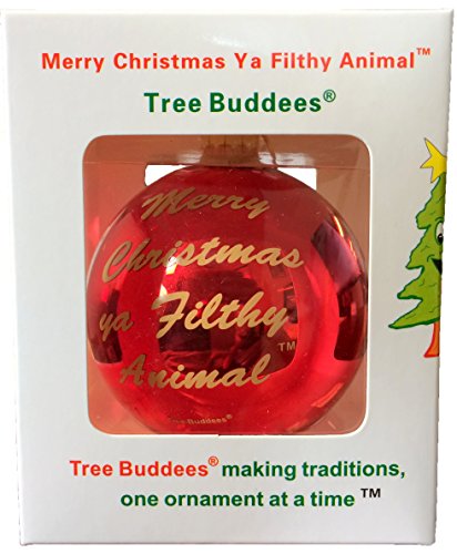THEME: Red Round Glass Ornament with the Made Popular by Home Alone Saying, Merry Christmas Ya Filthy Animal ® - Great gift or addition for the Home Alone Movie Fan in your family!