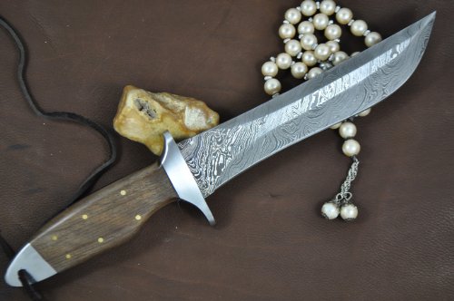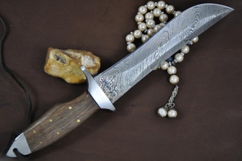 CUSTOM HANDMADE DAMASCUS HUNTING KNIFE - BEAUTIFUL BOWIE KNIFE