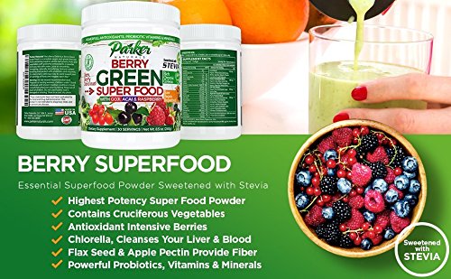 Berry Green Food by Parker Naturals is in our opinion the best green, superfood drink on the market. It is made using a combination of organic veggies and organic fruits, which are considered to be among the most healing superfoods in the world, and there are fifteen grams of these superfoods included in a single serving (5 servings of fruits and vegetables).
