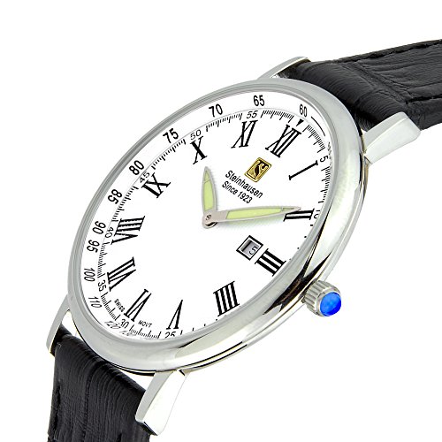 -. Binding : Watch -. Brand : Steinhausen -. Department : Mens -. EAN : 0849689026204 -. Feature : This watch features a stainless steel slim-profile case with a white dial and roman numeral hour markers / 35 mm round silver-tone case with mineral dial window and date window / Swiss quartz movement with analog display / Crown features a blue crystal / Water resistant to 30 m (99 ft) : In general, withstands splashes or brief immersions in water -. Label : Steinhausen -. Manufacturer : Steinhausen -. Model : S0122 -. MPN : s0122 -. PackageQuantity : 1 -. PartNumber : s0122 -. ProductGroup : Watch -. ProductTypeName : WATCH -. Publisher : Steinhausen -. Studio : Steinhausen -. Title : Steinhausen Classic Men's S0122 "Altdorf" Swiss Quartz Stainless Steel Black Leather Band Watch -. UPC : 849689026204