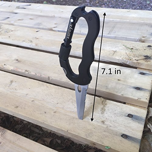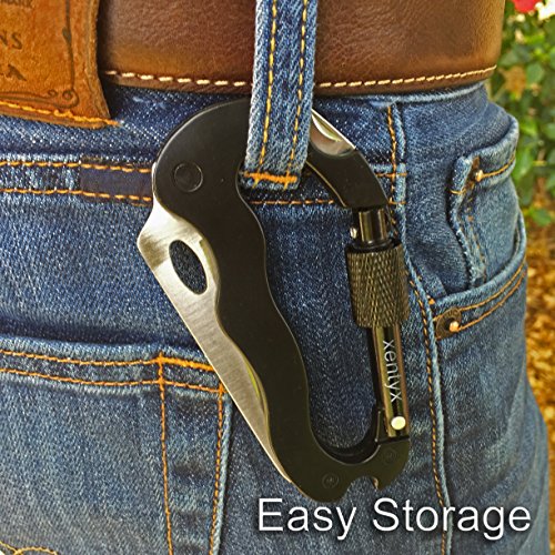 Xentyx Survival Gear, Carabiner Multitool Clip In Outdoor Camping, Hunting, Tactical Military Equipment, Multi Tool Locking Knife, Heavy Duty Pocket Blade, Black