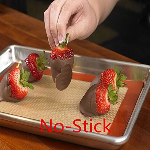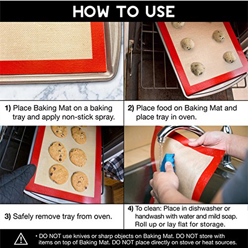Ousum Silicone Baking Mat Set of 2 Large Non-Stick Square Cookie Baking Mats Professional Grade, Silicone Dishwashing Cleaning Brush and Silicone Pastry Oil Brush - FDA Approved