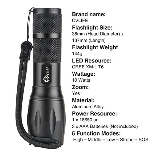 CVLIFE Ultra Bright CREE XML-T6 LED Tactical Flashlight Torch Light