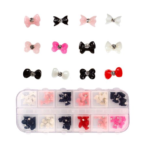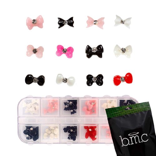 Who needs 3D glasses. Get nail art that pop with no special effects. b.m.c has got in some more 3D nail art cabochon studs to give your nail designs some extra flare. These cabochons are made from a solid colored acrylic, comes in range of bow designs, and comes stored in a 12 slot sorting container. *DISCLAIMER* The colors you receive may be different from the images depending on stock available. *INSTRUCTIONS*: Once you have prepped and painted your nails place cabochon on your nail while the paint is still wet. Let paint dry and then apply topcoat all around the edges of were the cabochon meets your nails, or completely over nail and cabochon to secure in place. *NOTE*: Due to differences between monitor displays, actual color may vary slightly from image. b.m.c is a registered trademark of Remi Collections LLC and is exclusively distributed by Bundle Monster. The b.m.c trademark is protected by US Trademark Law.Feature