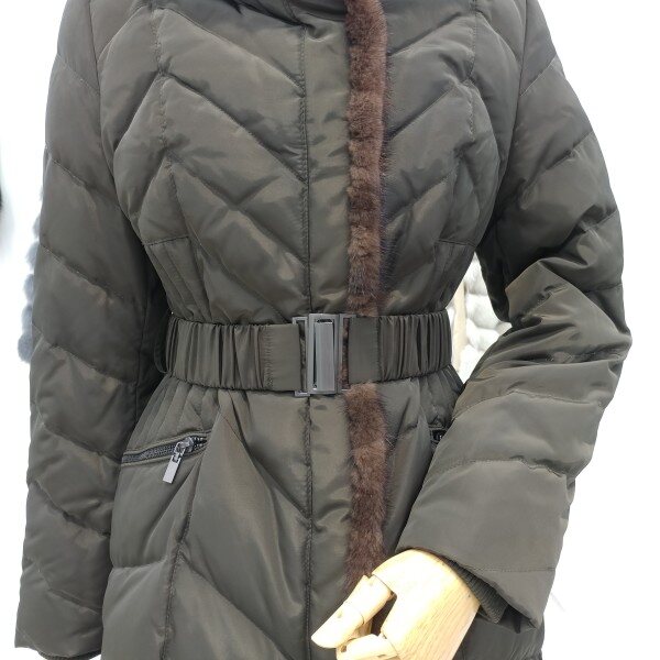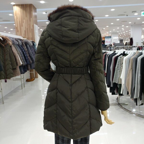 밍크퍼후드가 네크라인을 한번더 감싸주어 분위기업을 해드리며 벨트포인트로 단정함과 세련됨을 함께 보여드리고