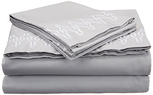 Jill Rosenwald Plimpton Flame Embroidered Sheet Set, Queen, Gray