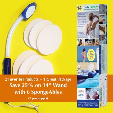 -. Title : 14" Body-Reach+ Bendable "Unbreakable" Lotion Applicator includes: (6) SpongeAbles or (1) Year Supply!