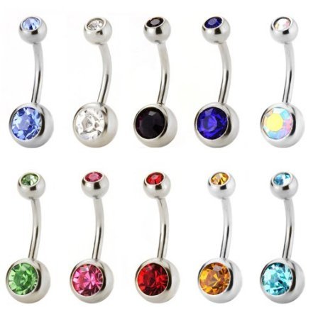 CrazyPiercing Lot of 10 Value Pack Assorted Stainless Steel Belly Button Ring Body Jewelry Piercing Ring BarBell Gift Set