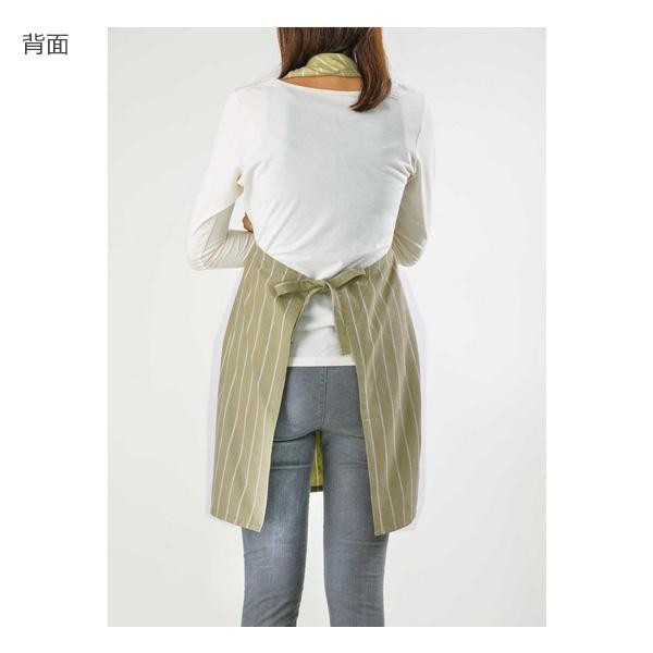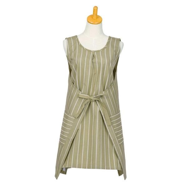 | 前後で結ぶタイプのデザインエプロンで、ノースリーブなので膨らみ袖でもストレスフリーに着られます。シンプルながらも細部にこだわり、両サイドには大きなポケット付きです。綿100%素材で着心地も優しくお洗濯も楽々です。 |