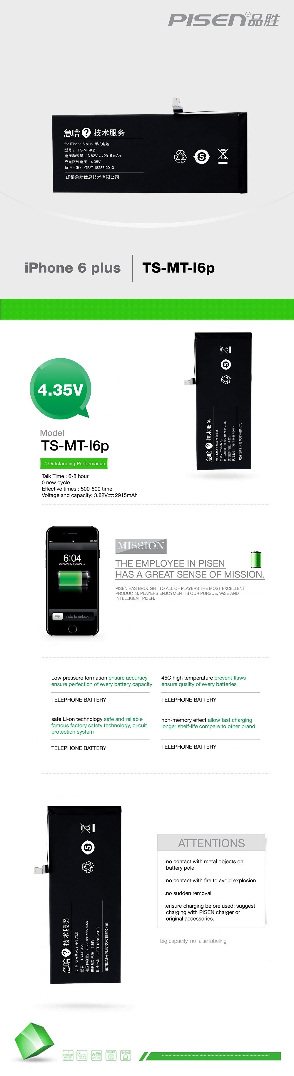 Product details of Official PISEN iPhone 6 Plus 2915mAh Battery