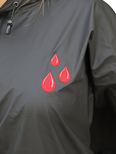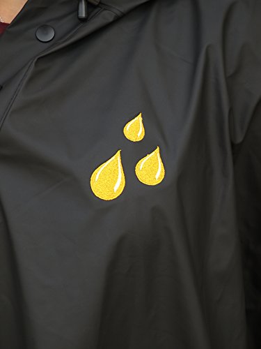 - Feature : Features embroidered colorful raindrop detail / Made from waterproof New Englander Polyurethane bonded to a knit backing / Heat-sealed seams and side snap closure under arms / Hood with snap neck & drawstrings for extra protection / One size fits all, dimensions 52" x 80"