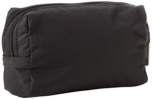 -. Feature : Two zip closure compartments / Wristlet strap with plastic quick release clip / Lightweight Nylon Bag / Includes two large exterior pockets
