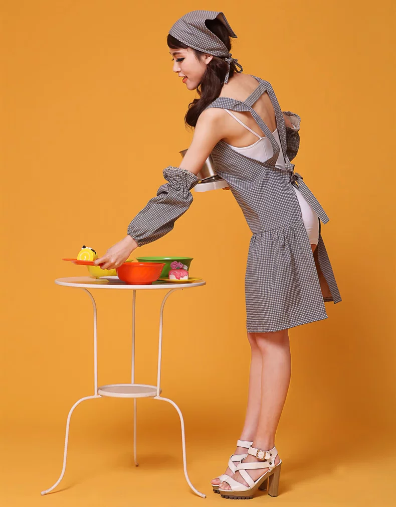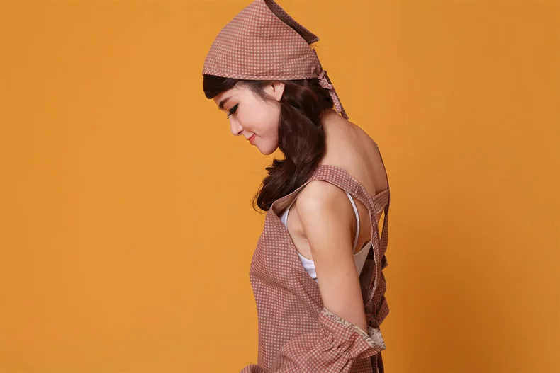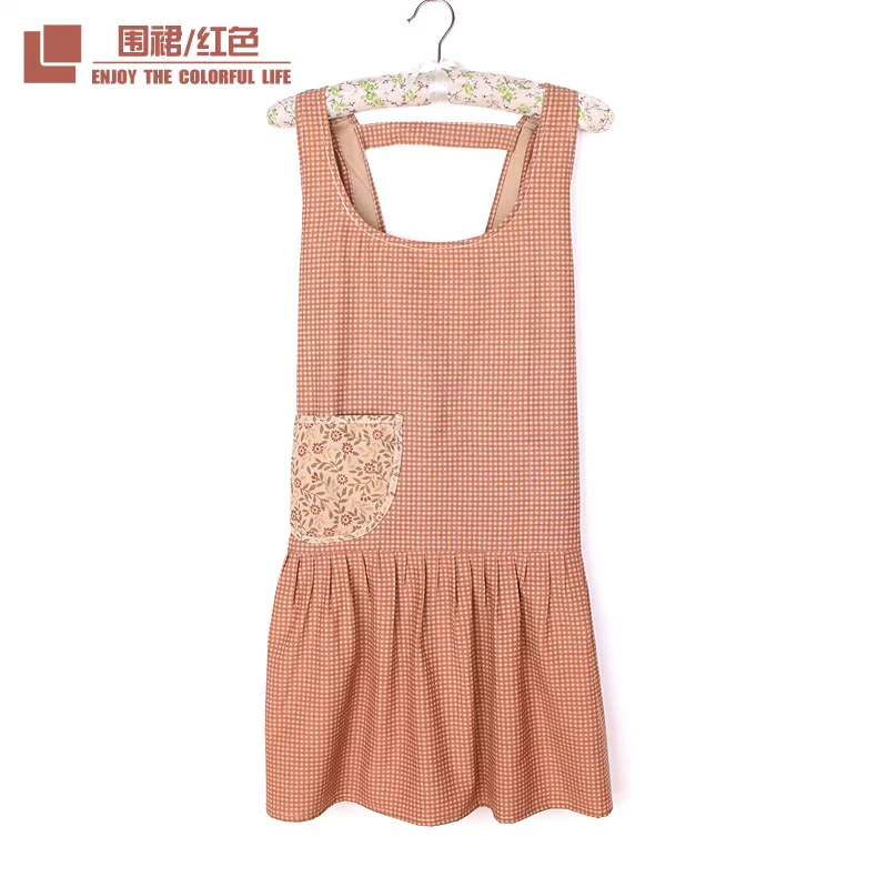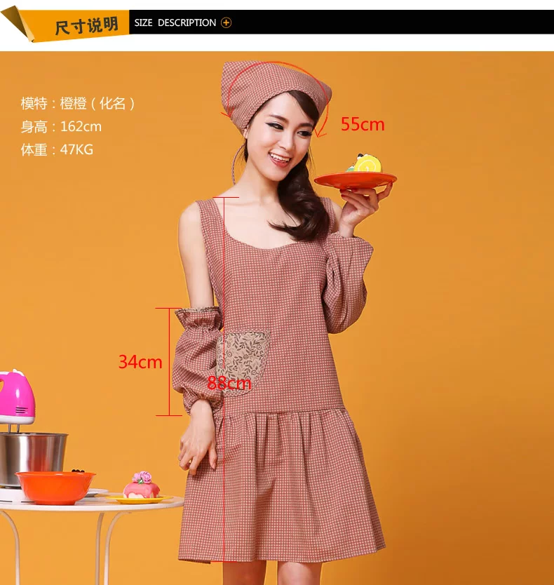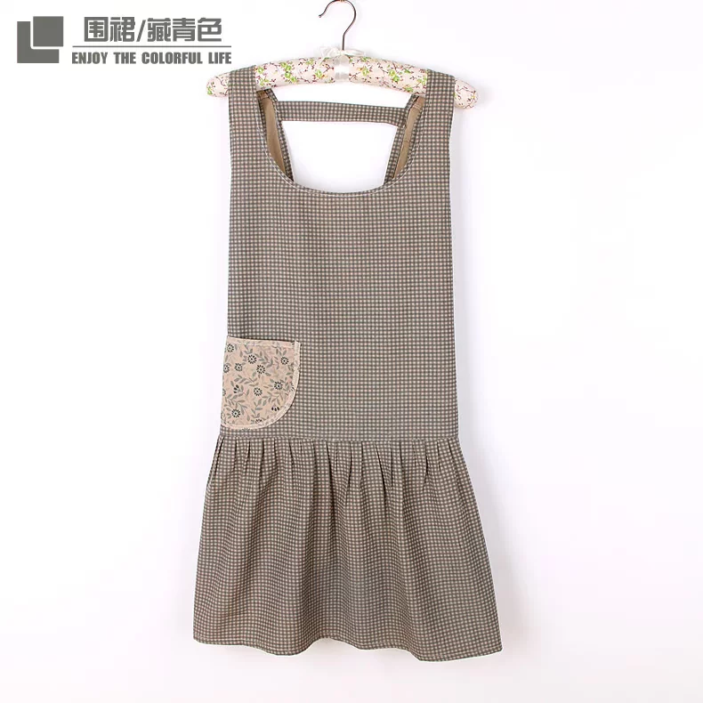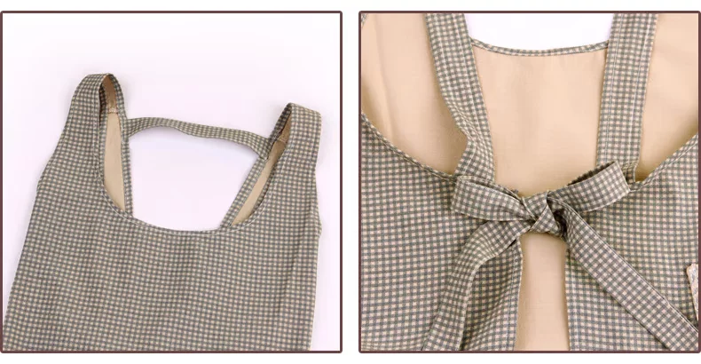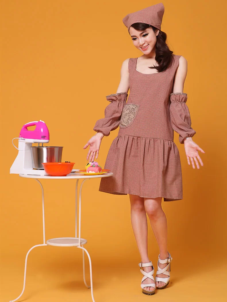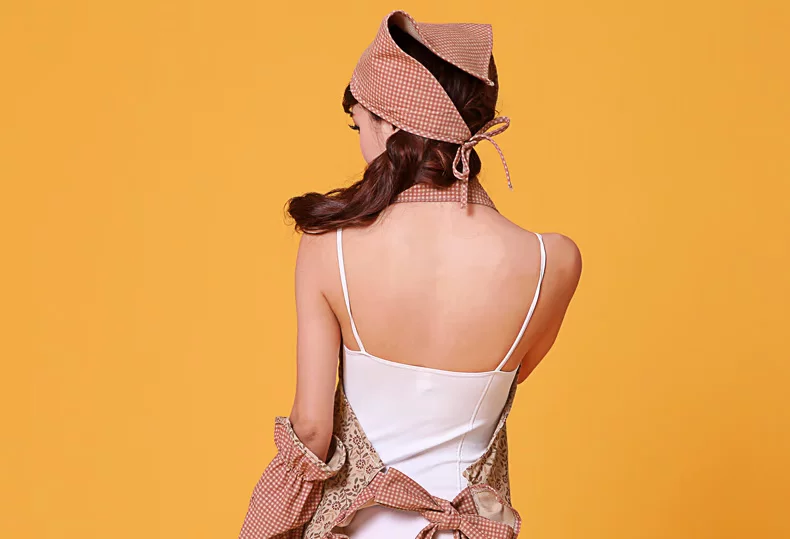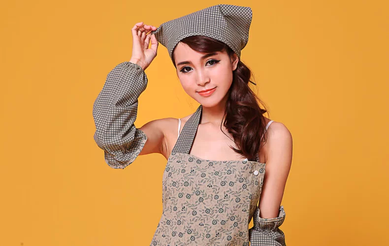 每时美家 韩版时尚田园格子围裙 创意简约袖套头巾三件套装围裙每时美家 韩版时尚田园格子围裙 创意简约袖套头巾三件套装围裙