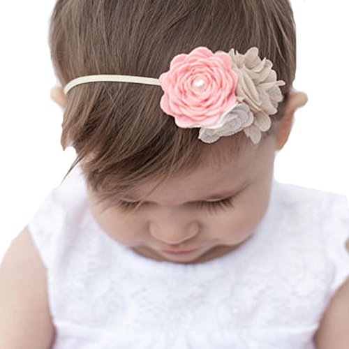 Miugle Baby Girl's Elastic Headbands with Flowers,14" Girth