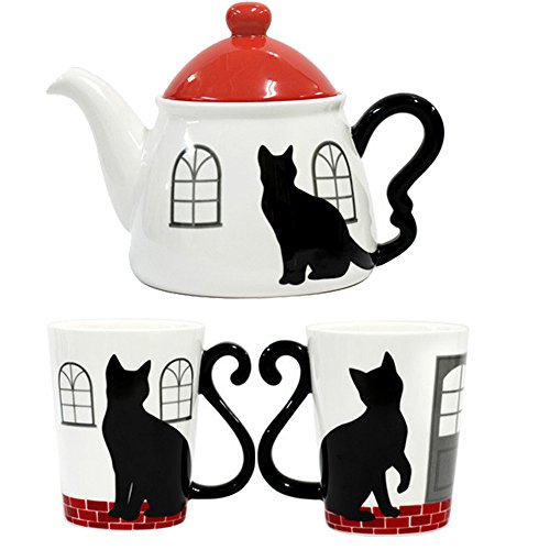 앨《다》 검은 고양이 티 포트 머그컵루검은 고양이 티 포트 페어 머그컵 세트