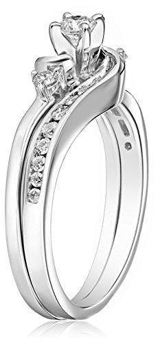 -. Binding : Jewelry -. Brand : Amazon Collection -. Color : White -. Department : womens -. Feature : Two-piece interlocking bridal set with white gold engagement ring featuring round-cut center stone and channel-set diamonds at shoulders / Includes coordinating wedding band in 14k white gold with two prong-set white diamonds / All our diamond suppliers confirm that they comply with the Kimberley Process to ensure that their diamonds are conflict free. / Imported -. Label : Amazon Collection -. Manufacturer : Amazon Collection -. Model : 3233730504W-AI-6-Parent -. MPN : 3233730504W-AI-6-Parent -. PartNumber : 3233730504W-AI-6-Parent -. ProductGroup : Jewelry -. ProductTypeName : FINERING -. Publisher : Amazon Collection -. Studio : Amazon Collection -. Title : IGI Certified 14k White Gold Interlocking Diamond Bypass Bridal Ring Set (1/2 cttw, H-I Color, I1-I2 Clarity)