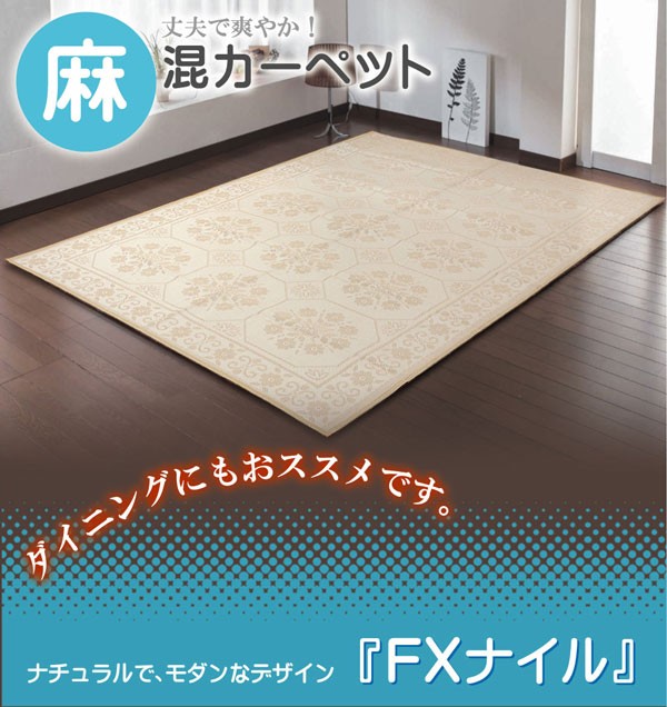 【商品名】麻混カーペット 『FXナイル』 アイボリー 江戸間2畳 174×174cm(中材:ウレタン) 正方形