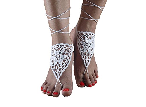 - Title : 1 X Ivory crochet barefoot sandals/Nude shoes/Foot jewelry/Bridesmaid accessory/Yoga shoes/ Beach accessory/Beach wedding/Belly dance/Anklet