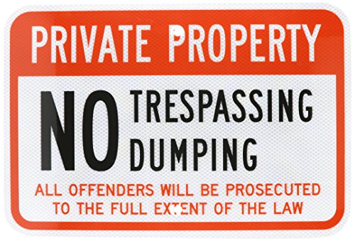SmartSign 3M Diamond Grade Reflective Aluminum Sign, Legend "Private Property No Trespassing No Dumping", 12" high x 18" wide, Black/Red on White