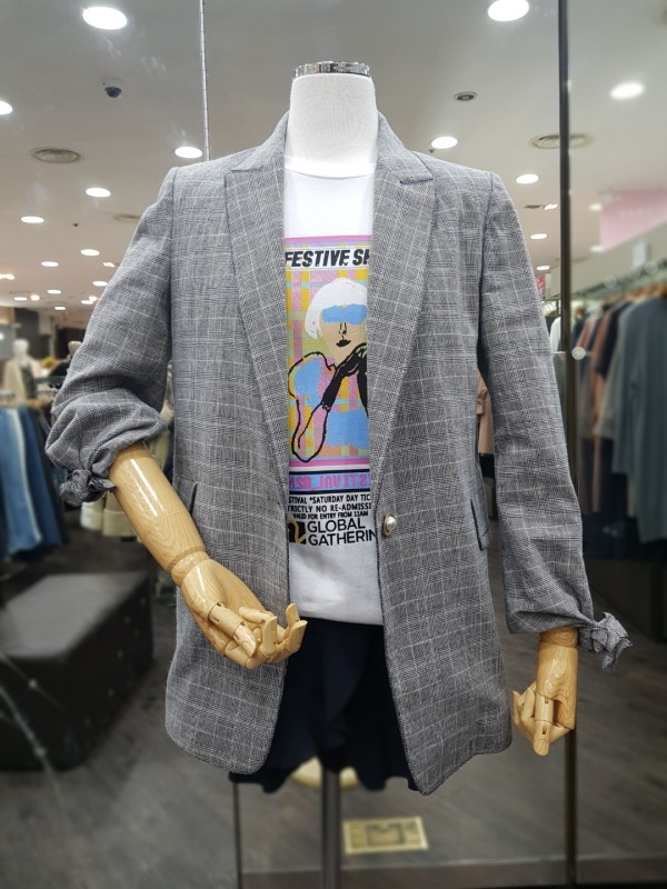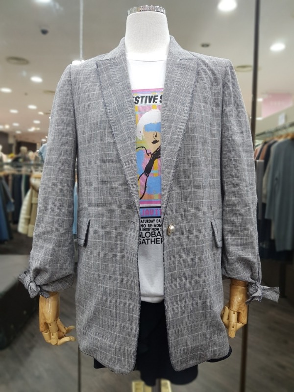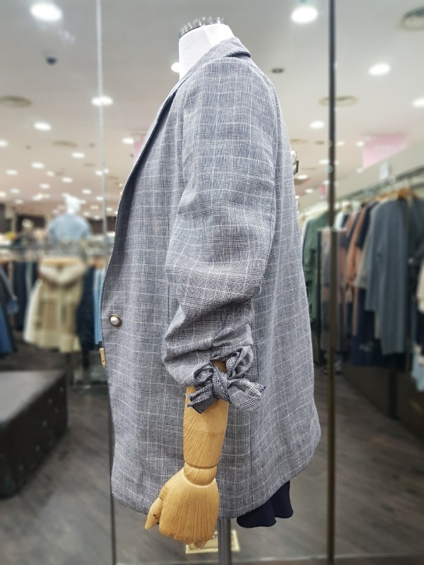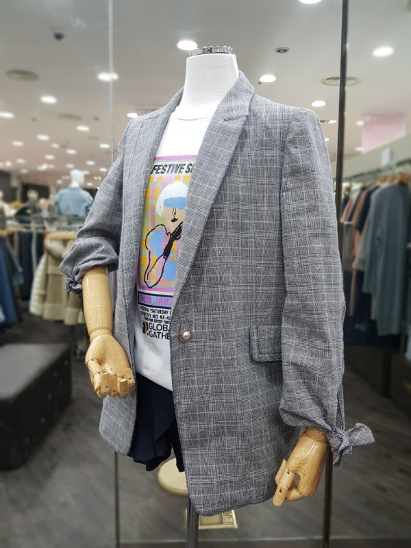 총장 68CM로 기본 스타일에 소매 리본으로 포인트를 준 캐주얼 자켓으로 소매를 살짝 걷어 올려 입으시면 이쁘게 핏이 연출됩니다