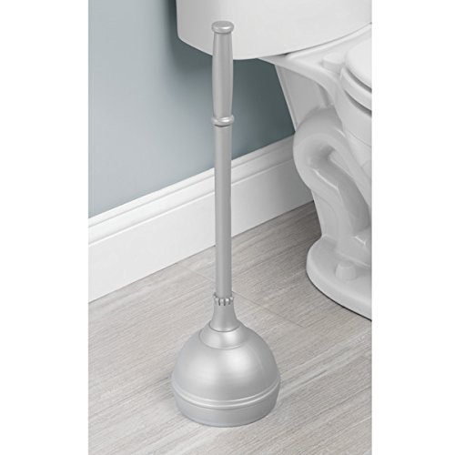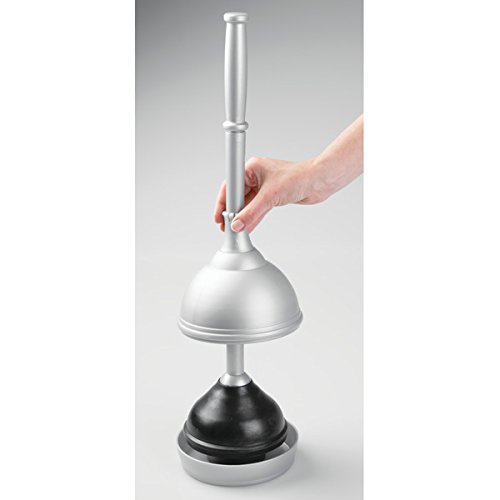Plunger and holder tuck easily into a corner for discreet storage and toilet paper reserve canister stores up to 3 rolls