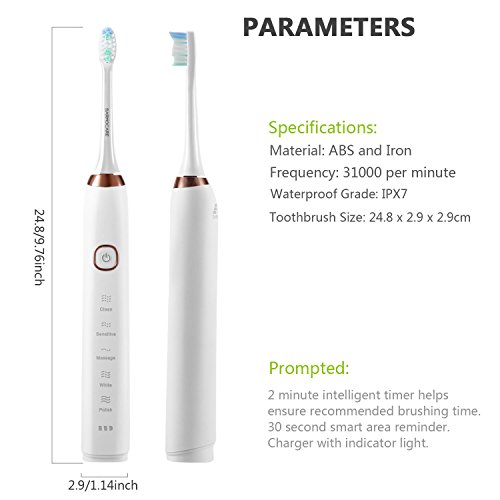 - Whiter and healthier: thanks to the patented acoustic technology, brush heads can finish 31,000 times movement per minute. Through the sound wave technology, the liquid function is highly promoted and dental plaque is stably removed.