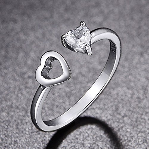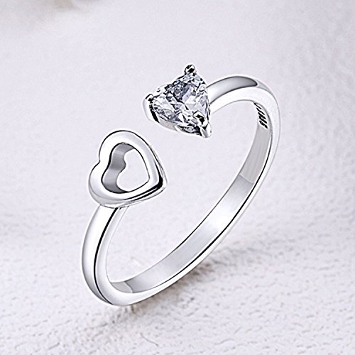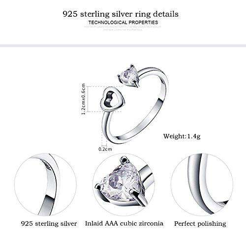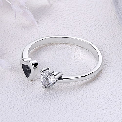 -. Title : 925 Sterling Silver Love Heart White Birthstone CZ Ring Expandable Open Rings Adjustable Women Jewelry