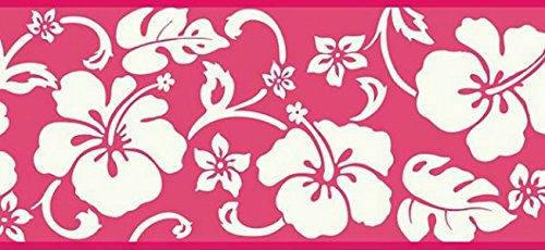-. Title : Wallpaper Border Designer Hawaiian White Hibiscus on Pink