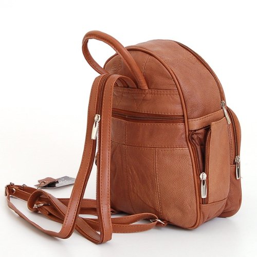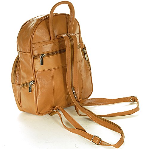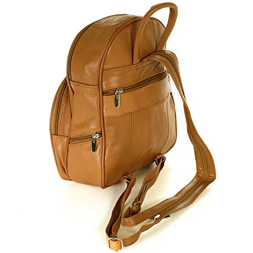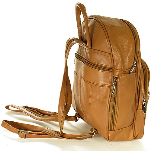 Leather Backpack Purse Mid Size & Convertible into single strap sling Bag or Backpack wearing Multiple Organizer Pockets Tan