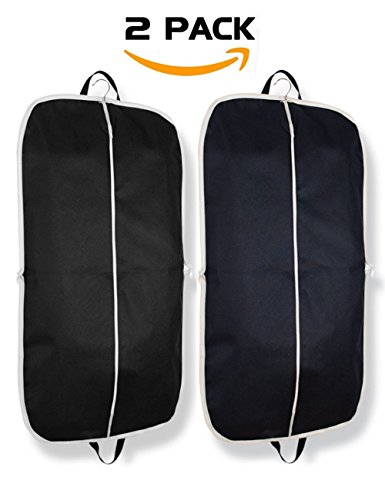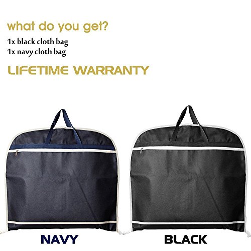 Bidear Garment bags Travel Storage Breathable Fold Over Bag 43 Inch Portable Dress Jacket Coat Clothes Cover Bag with Handles - 110 x 60 cm (Black+Navy Blue)