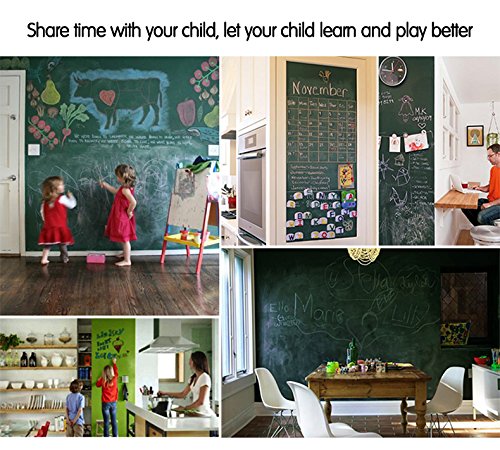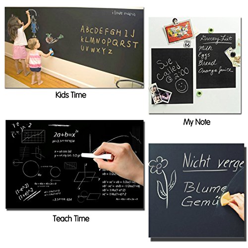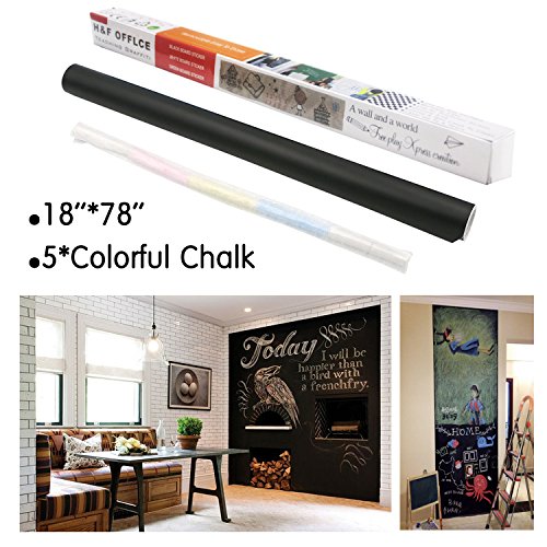 Each roll of removable blackboard wall decal measures 17-3/4 INCH x 78-3/4 INCH (6 FEET), 45 CM x 200 CM long. To write notes, make to do lists, play games, and other functions. Material: PVC