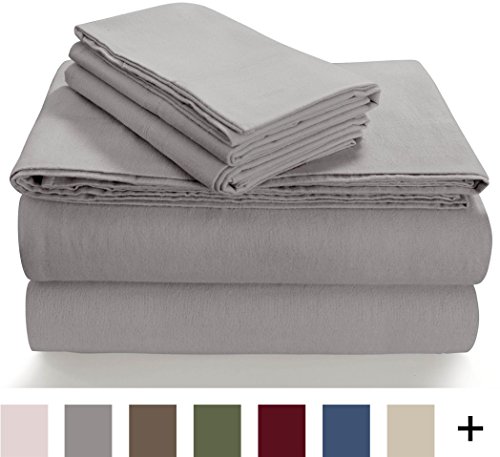 Tribeca Living Solid 5 oz Flannel Extra Deep Pocket Sheet Set, Queen, Silver Grey