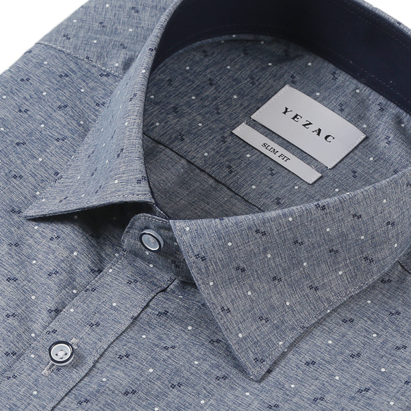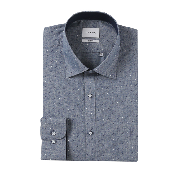 생활구김이 적은 카츠온 샵프린트 슬림핏 네이비긴팔셔츠