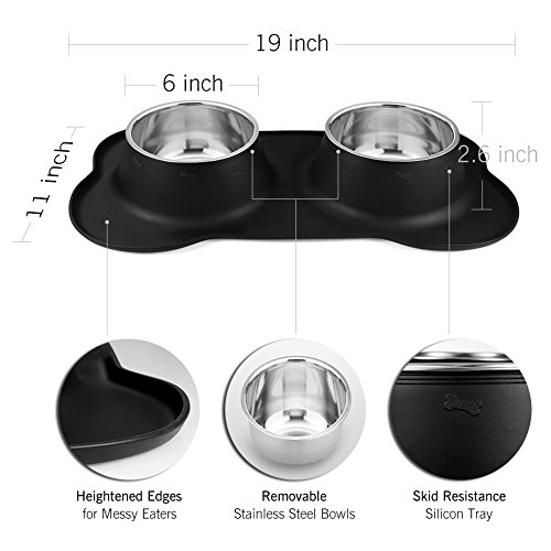 ★No Spill and Skid Silicone Mat — the soft mat not only effectively prevent the food and water spill but also can prevent the bowl skid and scratching the floor.