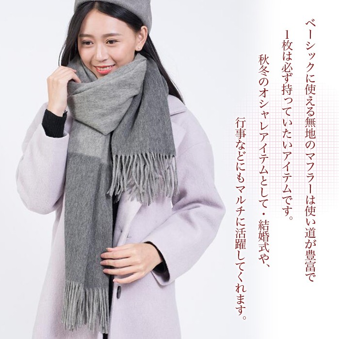 ・上質ウール100% マフラー男女兼用/ユニセックス) ・ 発熱性×保温性×保湿性×2WAYストレッチ×静電気軽減×吸湿性×毛玉防止!柔らかくて軽い ・2色からお選び頂けます。 ・暖かくて優しい風合いなので、秋冬に大活躍してくれそう♪プレゼントとしてもおススメです♪ ・女性なら必ず喜んでくれる大判のマフラーはプレゼントにもピッタリです。プレゼント包装OK ・防寒性も見た目どおり抜群なので、これからの季節に大活躍間違い無しです! ・ベーシックに使える無地のマフラーは使い道が豊富で1枚は必ず持っていたいアイテムです。 秋冬のオシャレアイテムとして・結婚式や、行事などにもマルチに活躍してくれます。 ラッピングの場合送料400円 北海道・沖縄の場合900円かかります。 |
