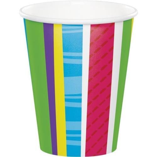 -. Feature : 24 Cedar Crate Market Brand Green Paper Straws in Stripes, Chevron and Dots Design, 7.75" (Made in the USA) / 16 Dinner Plates, 9", Creative Converting Bright and Bold. / 16 Luncheon Napkins, Creative Converting Bright and Bold. / 16 Hot or Cold Cups, 9 oz., Creative Converting Bright and Bold. / 1 Plastic Tablecover, 54" x 108", Creative Converting Bright and Bold.