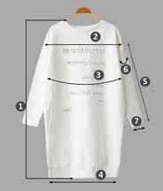 尺码 ①衣长 ②肩宽 ③胸围 ④下摆围 ⑤袖长 ⑥袖臂围 ⑦袖口围