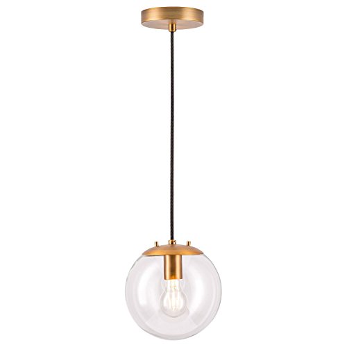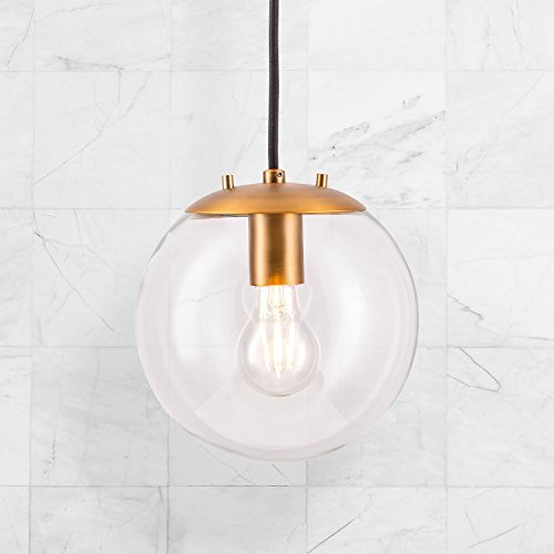 Sferra Pendant Light with LED Edison Bulb Included. Brushed Brass with Globe Glass Shade and Adjustable Fabric Wrapped Cord. Modern Industrial Factory Style. UL Listed, Linea di Liara LL-P201-AB