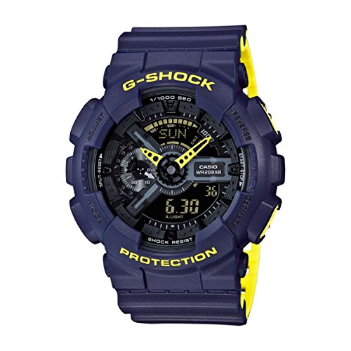 -. Title : Men's Casio G-Shock Anti-Magnetic Navy Blue and Neon Yellow Resin Watch GA110LN-2A