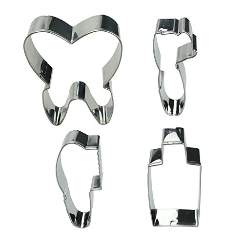 Pack of 4 Tooth Toothpaste Toothbrush Comb Shaped Durable Stainless Steel Cookie Cutter Cookie Mold Set by SHXSTORE