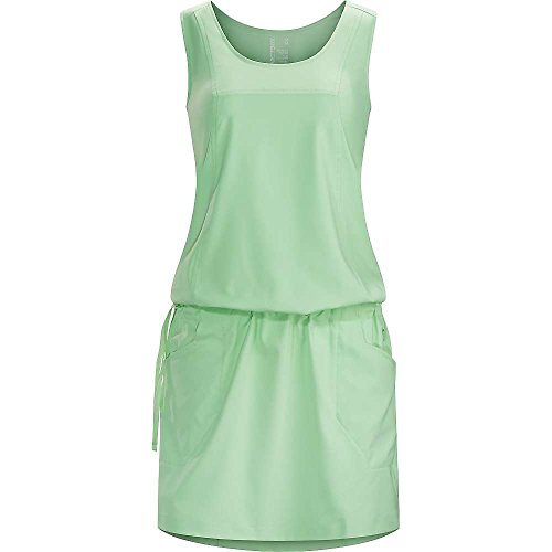 FEATURES of the Arcteryx Women's Contenta Dress Non-wrinkle polyester textile with mechanical stretch is quick drying and provides sun protection (UPF 50) Elastic drawcord at hip, dropped waistline Shaped hand pockets, zippered security pocket Gel BIRD logoFeature