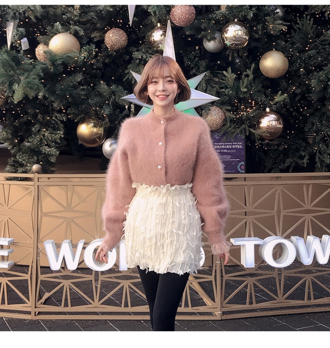 毛足の長いファーニットでフェミニンに♪
