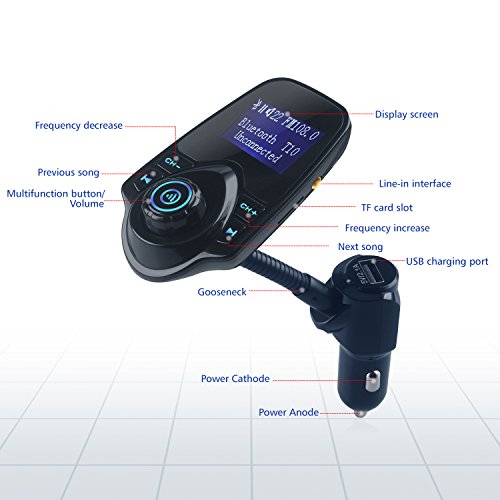 - Package Include: 1 Bluetooth FM Transmitter, 1 Audio cable, 1 User Manual, 1 Car Mount Holder, and Sincere customer service with 1 year quality guarantee.