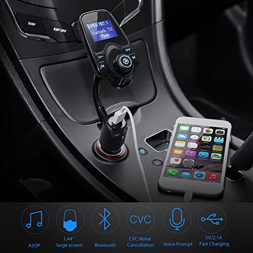 - LED Screen Display: 1.44inch LED screen display can show current voltage of the storage battery of your car, the name of songs or caller ID, connect information, also FM channel and volume