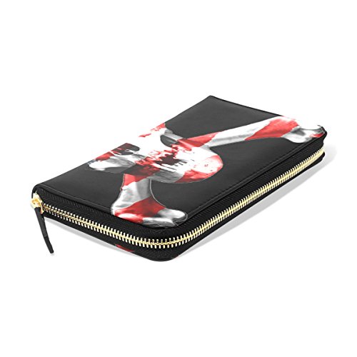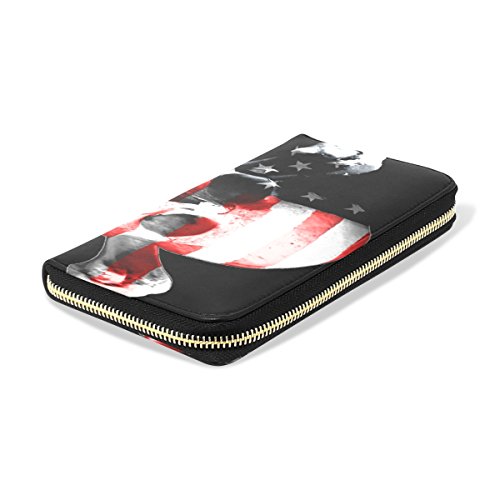 -. Title : WIHVE American Flag Skull Head Lady Women Clutch Leather Long Wallet for Credit Multi Cards Holder Purse